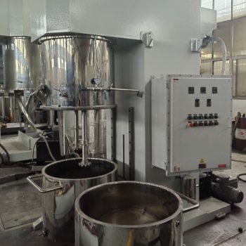 雙行星混合攪拌機(jī)的兩個(gè)雙攪拌框在桶體內(nèi)同時(shí)公轉(zhuǎn)并自轉(zhuǎn),可實(shí)現(xiàn)抽真空、加熱冷卻等,根據(jù)情況可實(shí)現(xiàn)轉(zhuǎn)速調(diào)節(jié)。如果配備多個(gè)攪拌桶,還可實(shí)現(xiàn)一臺(tái)雙行星混合攪拌機(jī)連續(xù)化作業(yè)。如果匹配液壓出料機(jī),則會(huì)讓出料變得更加方便。